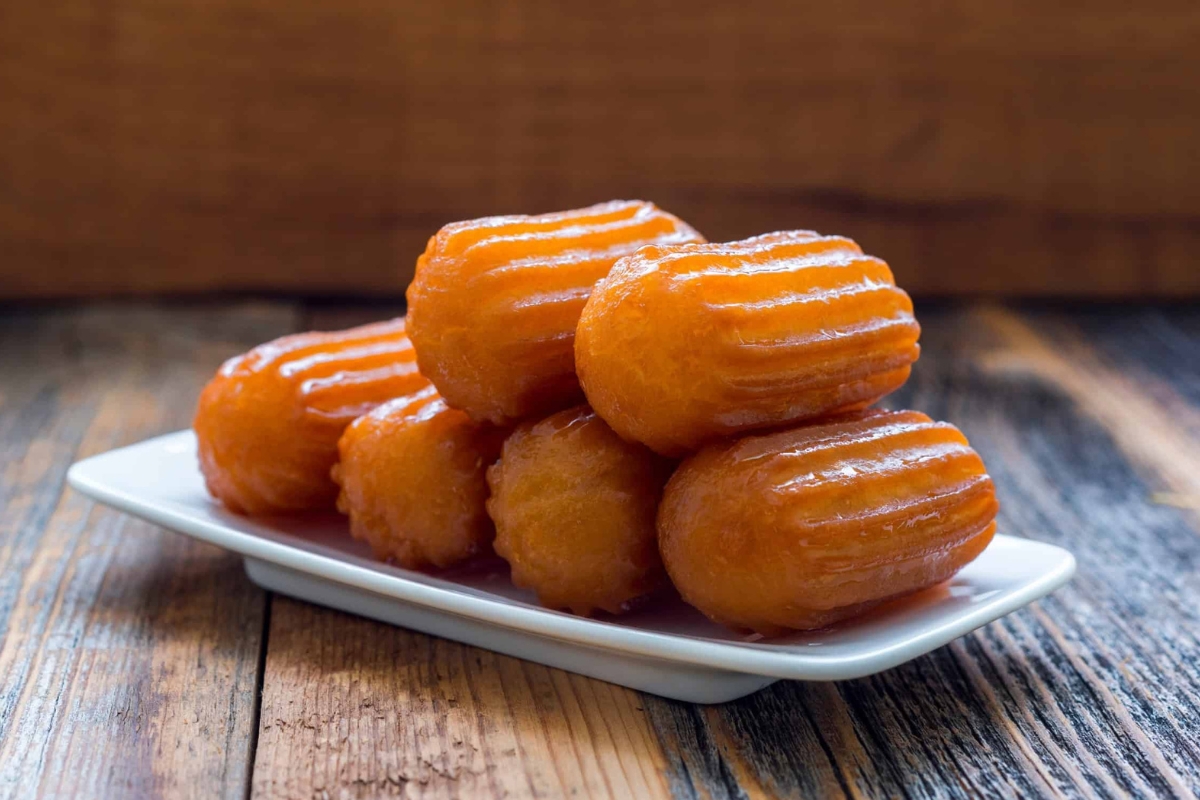 Resembling long, cylindrical pastries, Tulumba is made by frying a dough mixture and then soaking it in sweet syrup.
