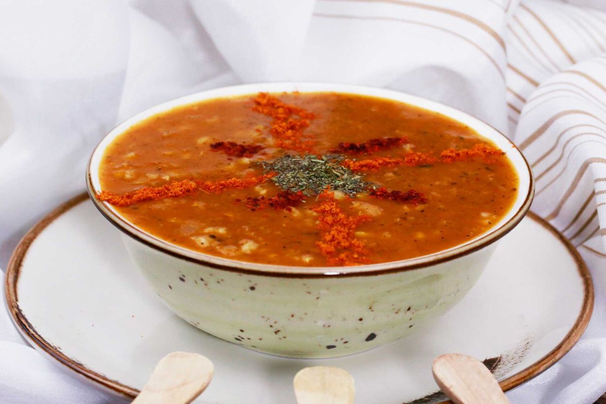 Legend has it that a woman named Ezo, who was married and dissatisfied, prepared a special soup to win over her mother-in-law. This soup, known as ezogabine or "bride Ezo," is made with red lentils, freshly grated tomatoes and onions, tomato paste (either sweet or spicy), and garnished with dried mint and chili flakes. It originates from a village near Gaziantep and continues to be popular among soon-to-be brides, although there is no evidence to confirm whether Ezo's plan was successful.
